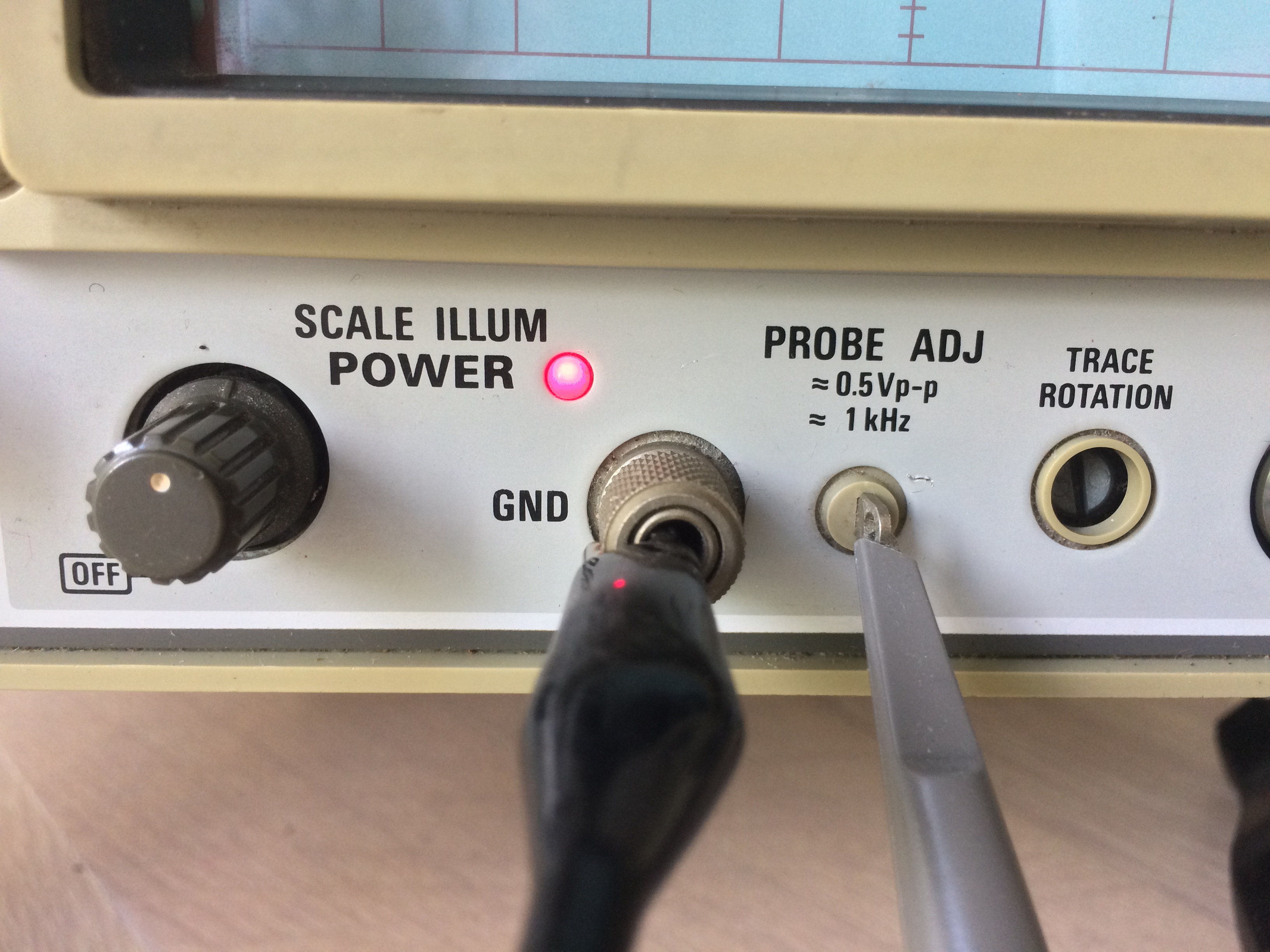 Maar ik heb geen idee of de oscilloscoop eigenlijk wel goed/betrouwbaar ' werkt'. Ik heb geen test-apparatuur (labvoeding, toongenarator) waarmee ik dat kan testen (denk ik)...