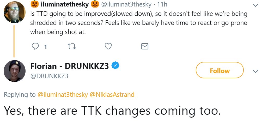 en nog veel meer volgens onze yt vriend Westie. Ik vond het opmerkelijk dat hij niets zei over TTK vs TTD. Alleen dat mogelijk sommige OP wapens worden afgezwakt.