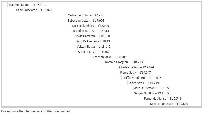 Second practice visual gaps: Red Bull a long way head, then a very tightly-knit group:https://t.co/lLtIFInOAA #F1 #MexicanGP #MexicoGP pic.twitter.com/QjwEoxthit