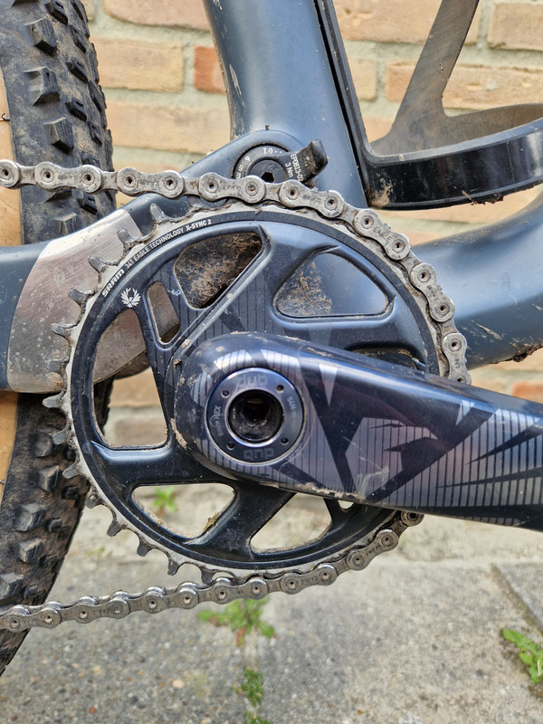 Ik kan niet terugvinden welke offset dit is, ik denk dat dit een GX uitvoering is (alles is GX) maar ik kom geen GX chainring tegen die ook een zilveren buitenrand heen. Wel een XX1 maar ik denk niet dat dit een XX1 uitvoering is.