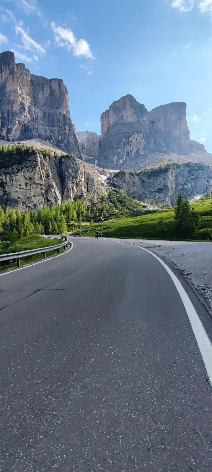 De Gardena vanuit Corvara was daarna qua klimmen en uitzichten echt het hoogtepunt. Goed asfalt, mooie haarspelden, en omdat er regen voorspeld was waren de meeste motormalloten en Ferrari-lawaaimakers al naar huis vertrokken.