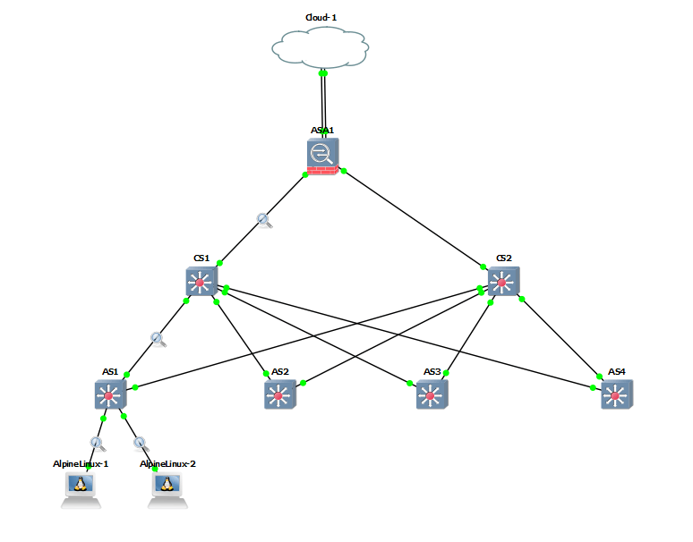 Voor een Cisco netwerk infrastructuur zou ik graag op de applicatie switches gebruik maken van "switchport protected", dit zorgt ervoor dat apparaten elkaar niet kunnen zien. Alle servers draaien immers op andere VLAN's en zullen dus via de ASA met een ACL gerouteerd worden, zelfde geld voor internet gebruik.
