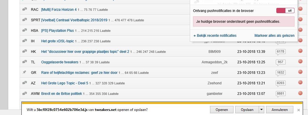 Bemerk dat beide notificaties betrekking hebben op een Tweakernaam met een punt in. De notificaties zelf tonen ook niet op welke thread de notificaties betrekking hebben.