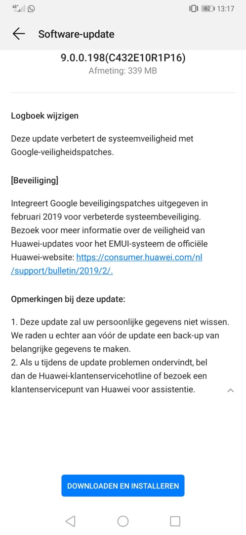 Er zal misschien ook wel een update zijn voor de Huawei spionage app.