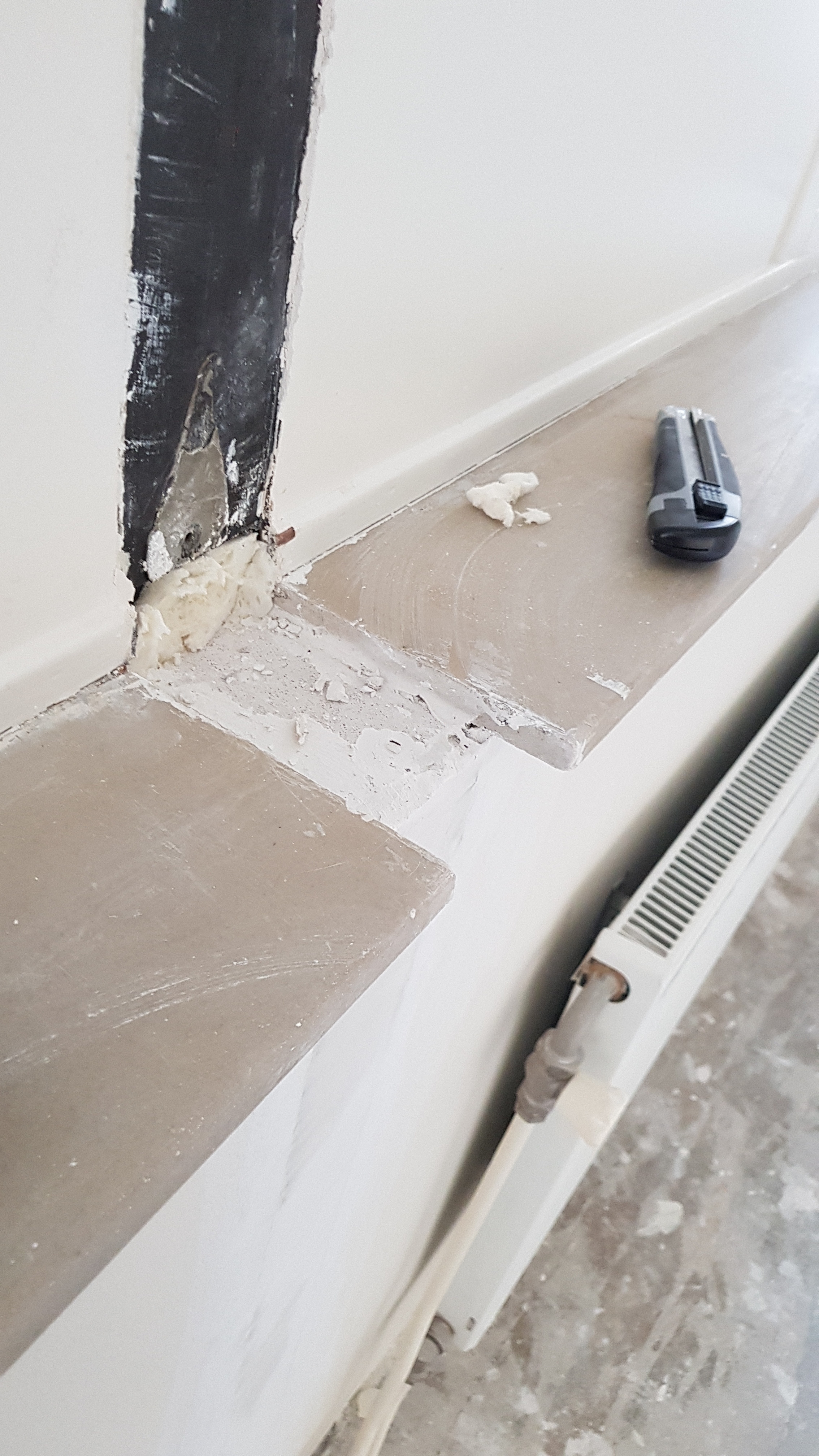 Gleuf breder maken want de nieuwe vensterbank is toch dikker