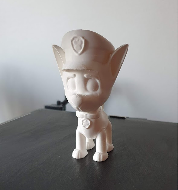Eerste print was het hondje, wat er prima uitzag. Daarna voor de kleine een Paw Patrol Chase, waarvoor ik de slicer in moest om de infull en een 'brim' op de plaat te leggen. Tot zover leuke leercurve en het resultaat na 3 pogingen was best aardig. Vooral wat schade door het weghalen van de infill.