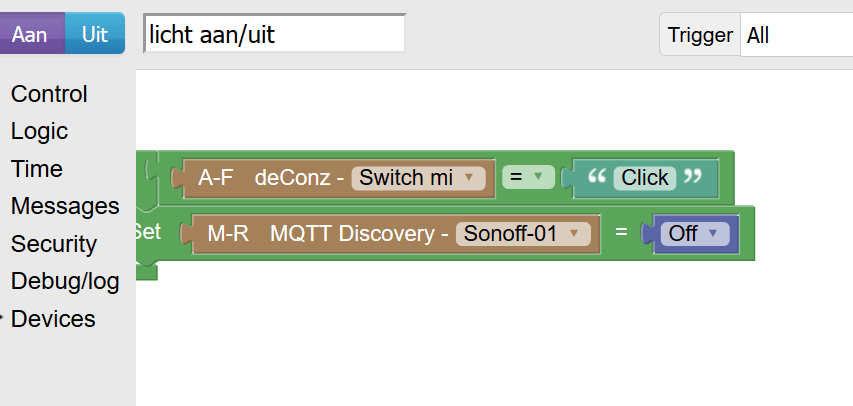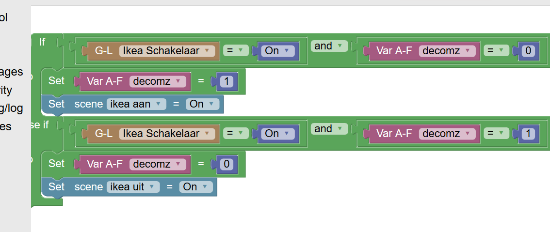 Gaat die Ikea schakelaar überhaupt weleens naar 'Off'? En hoe staat je Blockly event (All/Device/Whatever)?sterremos schreef op maandag 6 mei 2019 @ 21:38: