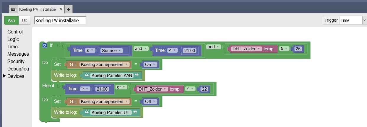 Bovenstaand scriptje in Lua met Domoticz Event doet nu wat het moet doen.