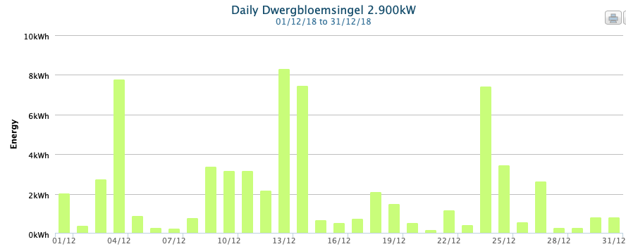 Mijn 12 LG NeonR's (ZZO) liggen nu precies een half jaar (sinds 20 juni) en wat voor een half jaar. 2730kWh/4440Wp = 615Wh/Wp. En dan ook nog ongeveer 100Wh/Wp gemist door schaduw vanaf half september. Ben benieuwd wat het volgende half jaar gaat doen. Totaal 4150kWh opgewekt en ruim 1000kWh meteen gebruikt. Per saldo 270 kWh overgehouden en dus geleverd. Volgend jaar nog ongeveer 1000kWh meer verbruik verwacht ter vervanging van 500m3 gas. Dus houd ik nog steeds over