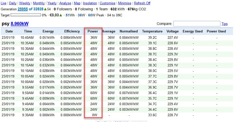 Vandaag dus ook voordeel gehad van ons SolarEdge-systeem: laagste paneel 30 Wh, hoogste 300Wh!
