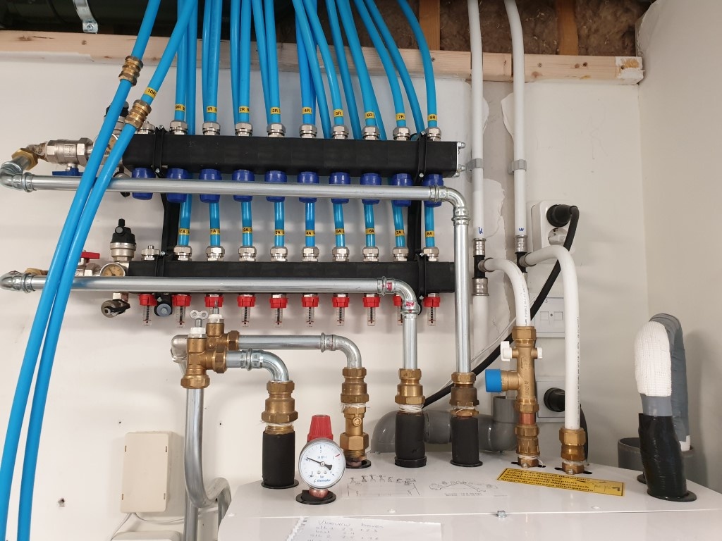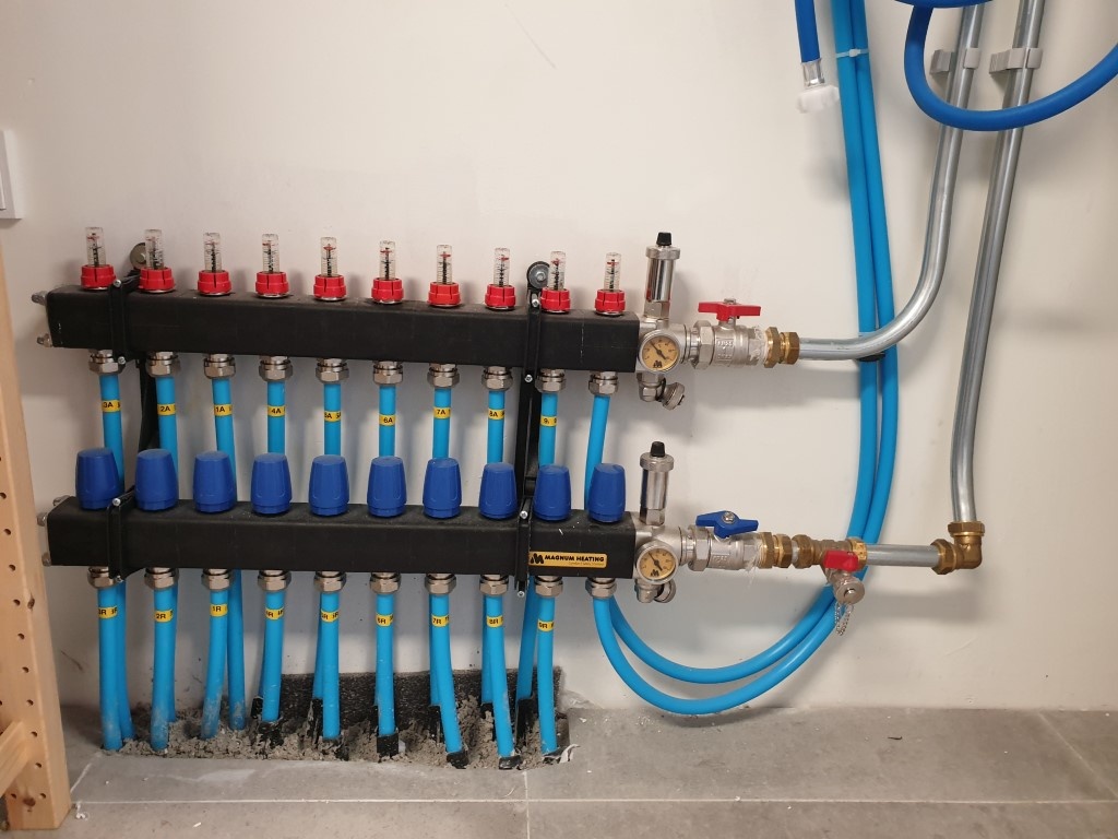 Bestaande verdeler aangepast naar hydraulisch actief, zodat het water door de vloer, en de wisselaar gepompt wordt: