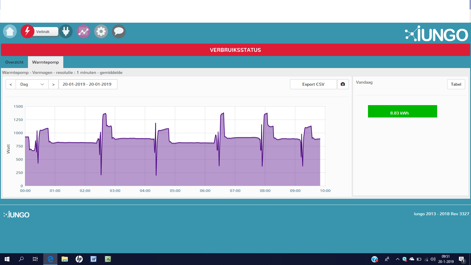 Bij mij voor het eerst dit stookseizoen dat de ruimtetemperatuur meer als 1 graad gedaald is in de nachtverlagingsperiode, dus de WP sprong vanmorgen rond 06.30 aan. Even een kortstondige piek richting de 4KW elektrisch. Volgens de COP tabel op nominaal vermogen van 11,2KW bij -7 met een COP van 2.84 maakt 3,94KW. Klopt wederom akelig nauwkeurig met de werkelijkheid.