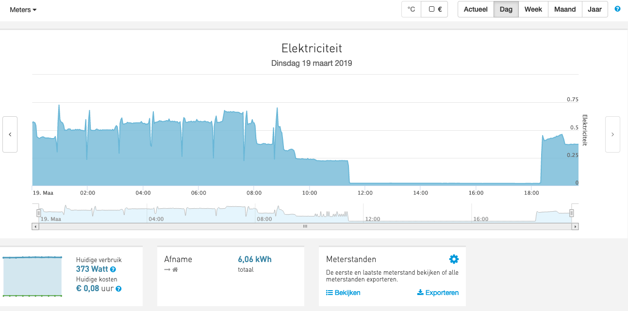 Gisteren in totaal 10,97kWh verbruikt waarvan 4,66kWh voor SWW en dus 6,31kWh voor CV.