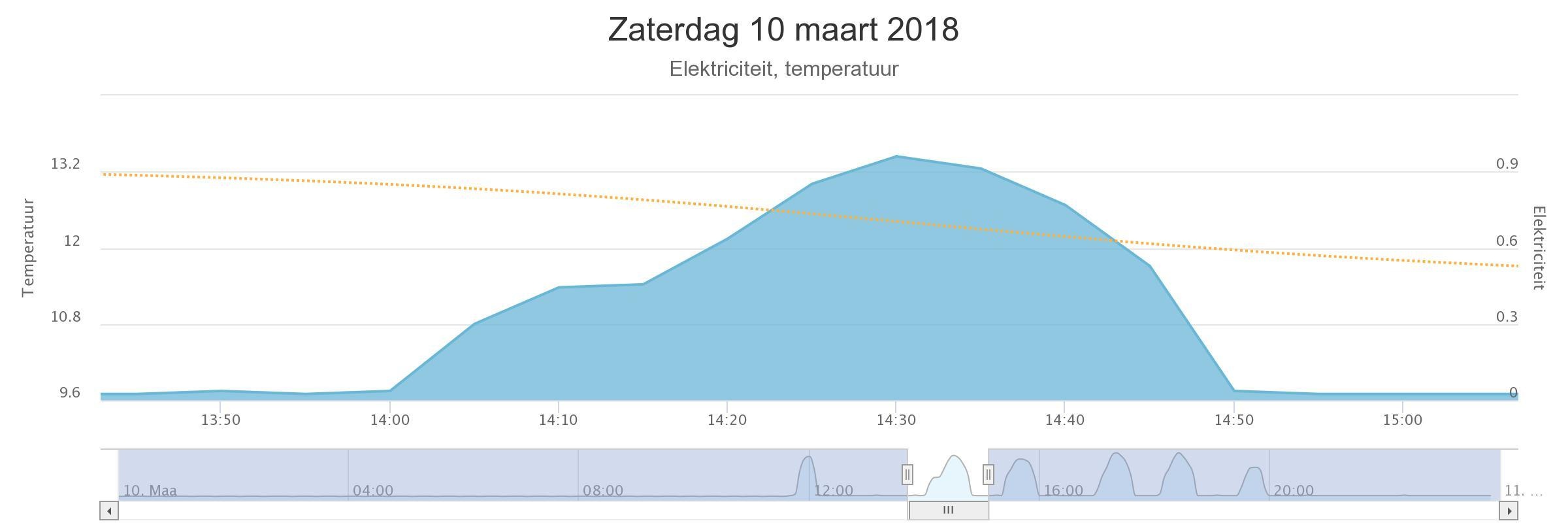 Vraag over de grafiek: met name de tweede daling van Tbuiten geeft een even steile daling van Tbinnen. Dat zou betekenen dat er dan geen enkele isolatie / weerstand warmteoverdracht is. Zou dat een fout kunnen zijn?