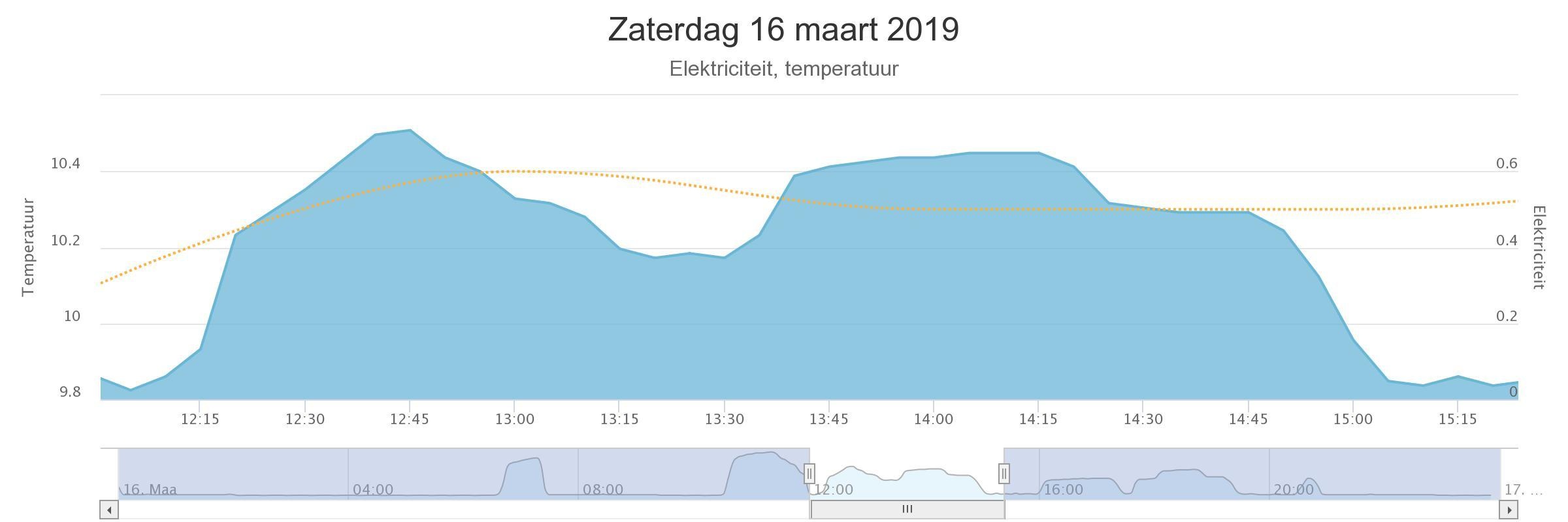 Wel denk ik dat de WP er tegen de avond mee gaat stoppen omdat de ruimtetemperaturen bereikt zijn vanwege de redelijk hoge buitentemperatuur.