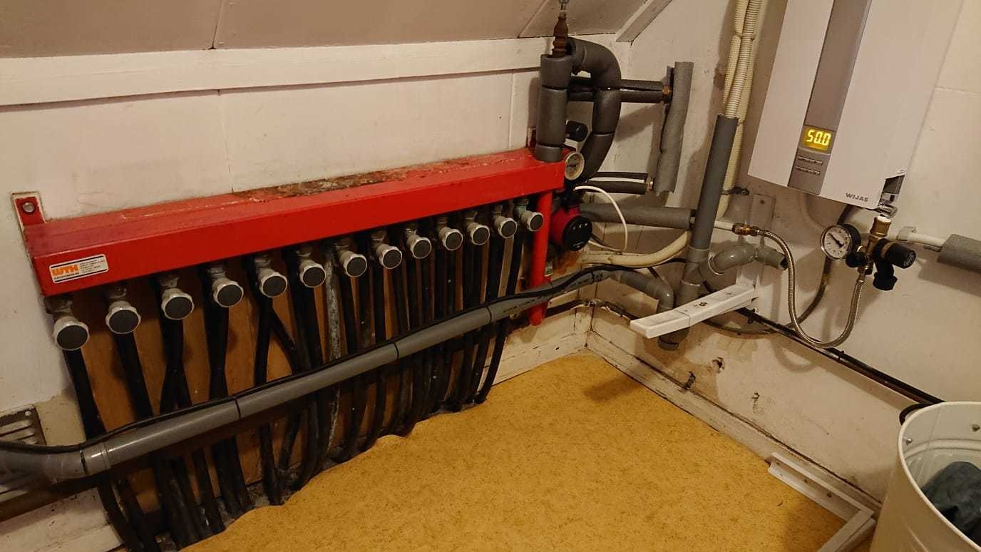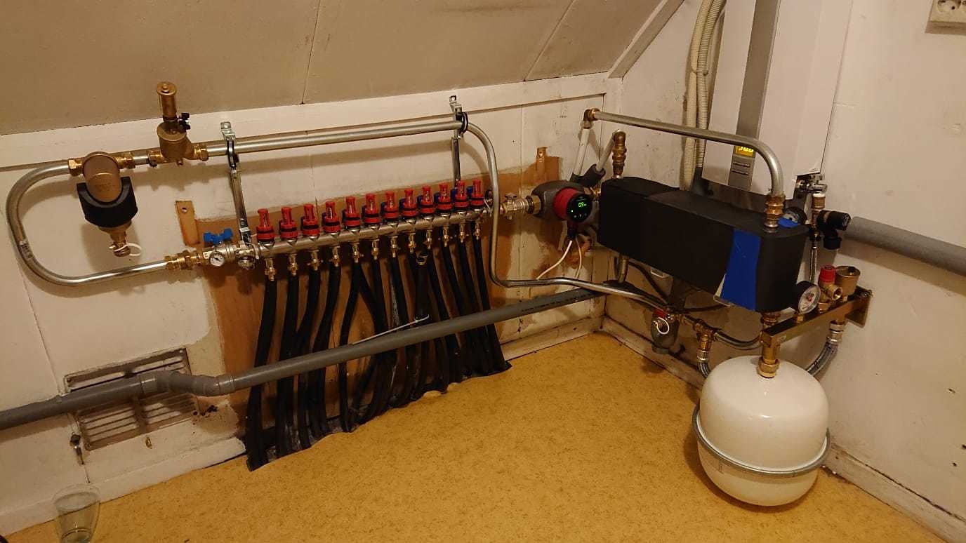 Chris_82 wat geboomt over t vervangen van de HTV vvw verdeler. Duurde ff voor alles had uitgezocht, en tijd had om het te installeren. Ik wilde t zelf proberen, dus moest flink wat tijd hebben. Van het weekend toevallig de stoute schoenen aangetrokken en alles omgelegd. Stuk meer werk dan ik had gehoopt, en t werd opeens kouder deze week (weerbericht niet echt gekeken), maar inmiddels draait de vvw ie weer. Er zit een grote warmtewisselaar tussen van marktplaats (750KW), 12 groepen rvs verdeler, magnetische vuilafscheider, automatische ontluchter & expansievat & alles op 22mm. Draait wel prima, maar ik moet echt even goed kijken hoe het gaat qua warmte. sowieso moest ik 2 dagen stoken om t weer een beetje op temperatuur te krijgen, flink wat beton buffer die na 2,5 dag wel echt goed koud was geworden. en ik wilde niet de Ta niet gelijk op 50 oid zetten.