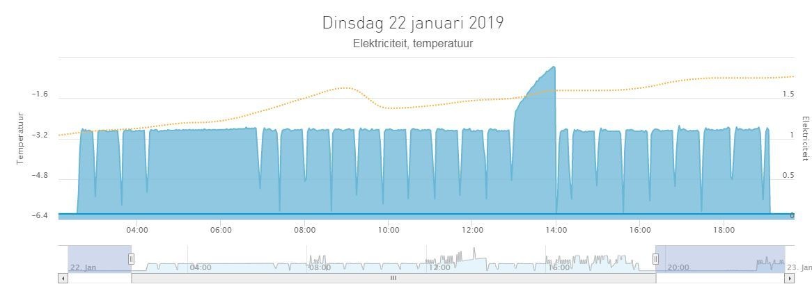 Ik corrigeer ook op defrosts; het E3 telwerk trek ik af van de geleverde thermische energie, want deze energie is niet gebruik voor verwarmen van het huis. Het is hier toch 0,5kWh thermisch wat terug wordt gehaald per defrost; 8 defrosts op een dag van samen 4kWh maakt wel wat uit op bijvoorbeeld 75kWh warmte (5%).
