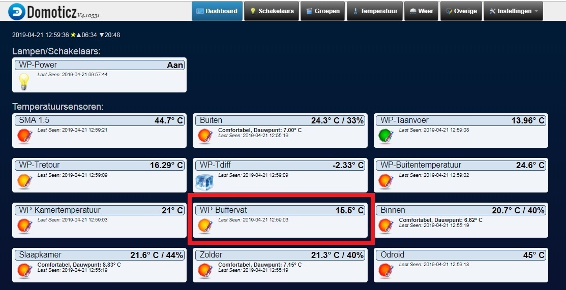 Staat nu op 22.8 zonlicht.... Maar dat weet je.. mijn Wp was ook vanmorgen in standby gegaan bij 12C ergens..