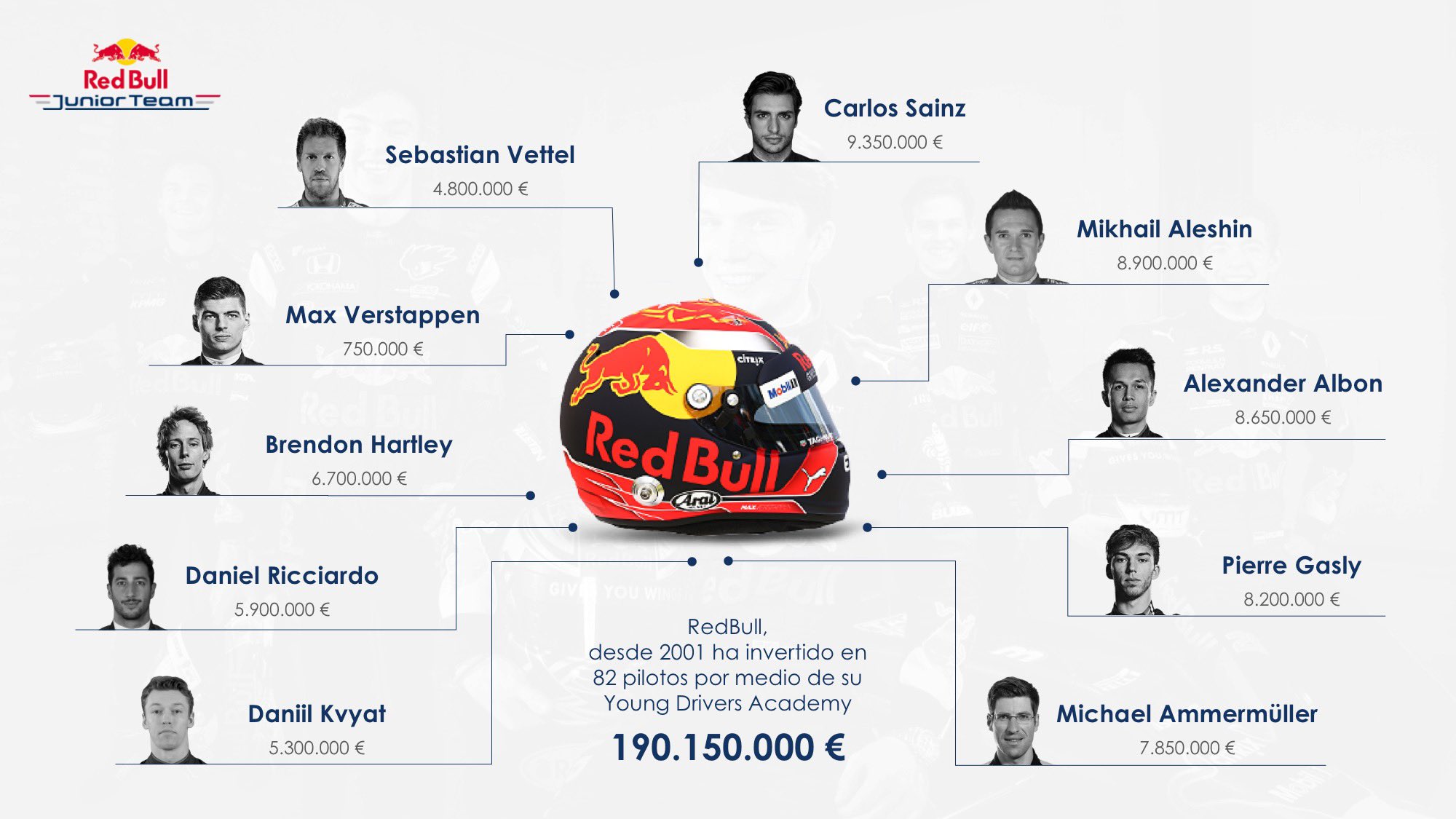 De investeringen van Red Bull Junior Team in de coureurs.