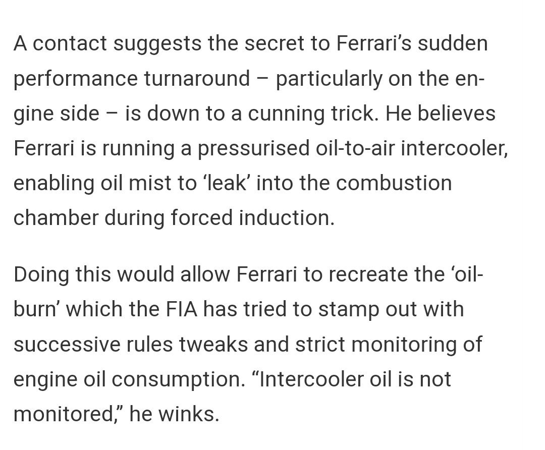 Albert Fabrega said there is a rumor that Ferrari is using the refrigerant oil to produce more energy.