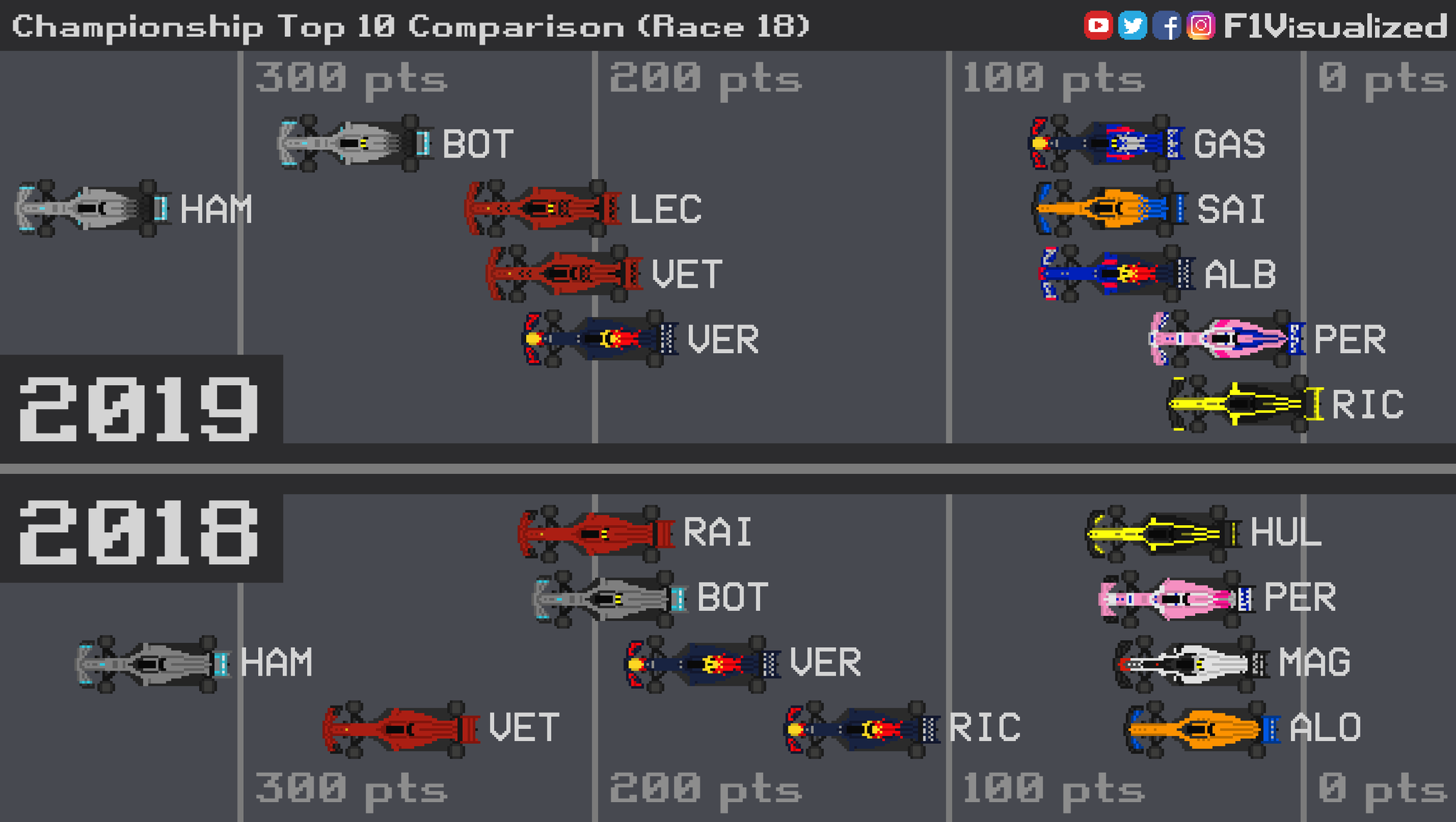 Wat wel leuk is dat vooral de jongere coureurs in de top staan. De enige ervaren coureur is Lewis maar op zich is dat logisch.