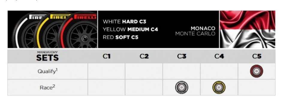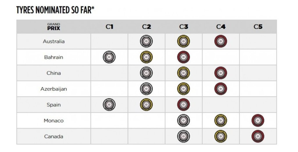 Ik kijk gewoon niet naar de kleuren maar naar de codes. Net als dat we vorig jaar 7 compounds hadden, hebben we er nu 5 (C1 t/m C5). De kleuren zijn een leuke bijkomstigheid voor tijdens de race zodat je kan zien waar ze op rijden.