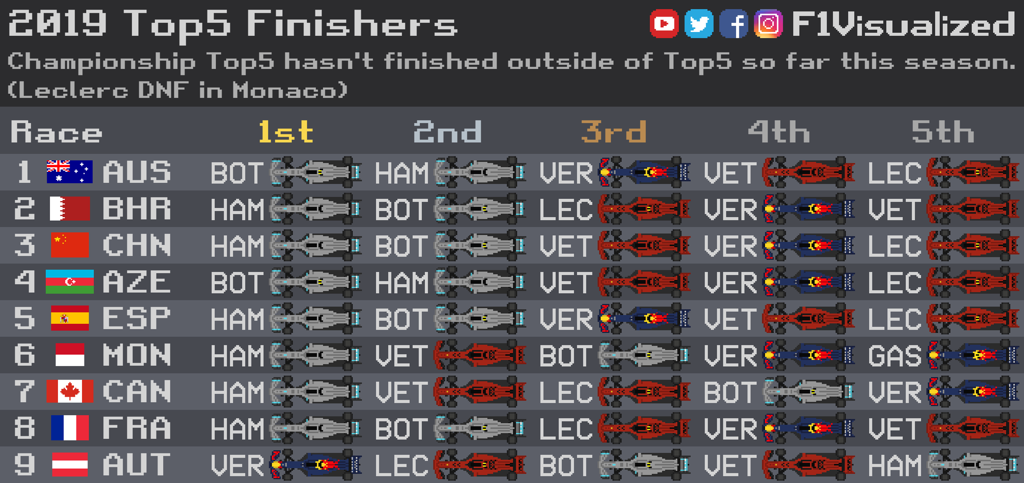 Grappig dat Leclerc nog niet als 4e is gefinisht dit jaar en Bottas nog niet lager dan 4e