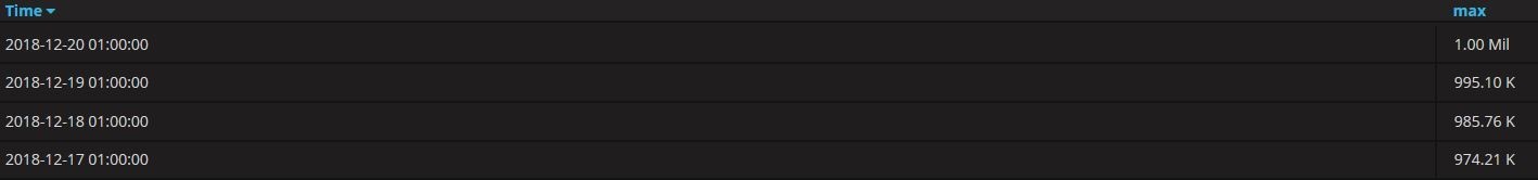 De max van de voorbeeldquery is dus de data van de 01:00 uur. Zoals je ook ziet: