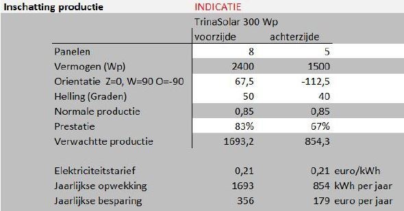 De woning heeft een dakvlak wat is gelegen op het oostnoordoosten en een dakvlak op westzuidwesten. Er kunnen op dit westzuidwesten dakvlak 8 zonnepanelen worden aangebracht en op oostnoordoosten dakvlak 5 panelen ( zou meer kunnen )maar ik wil de ochtend zon kunnen gebruiken voor bv wasmachine