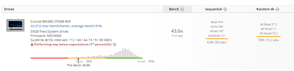 Ik had laatst voor de lol UserBenchmark gerunt op mijn PC, en wat bleek? Mijn SSD presteert enorm slecht: