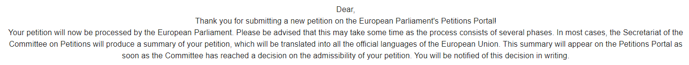 Petitie gestuurd naar het Europese parlement wat betreft legal age.