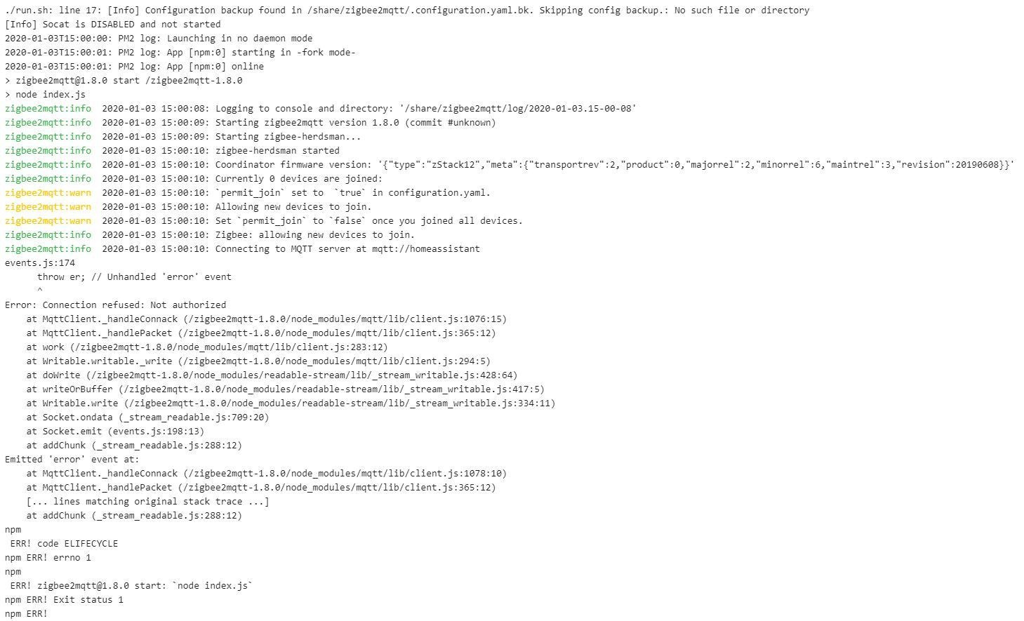 zigbee2mqtt:info 2020-01-03 12:34:39: Connecting to MQTT server at mqtt://core-mosquitto