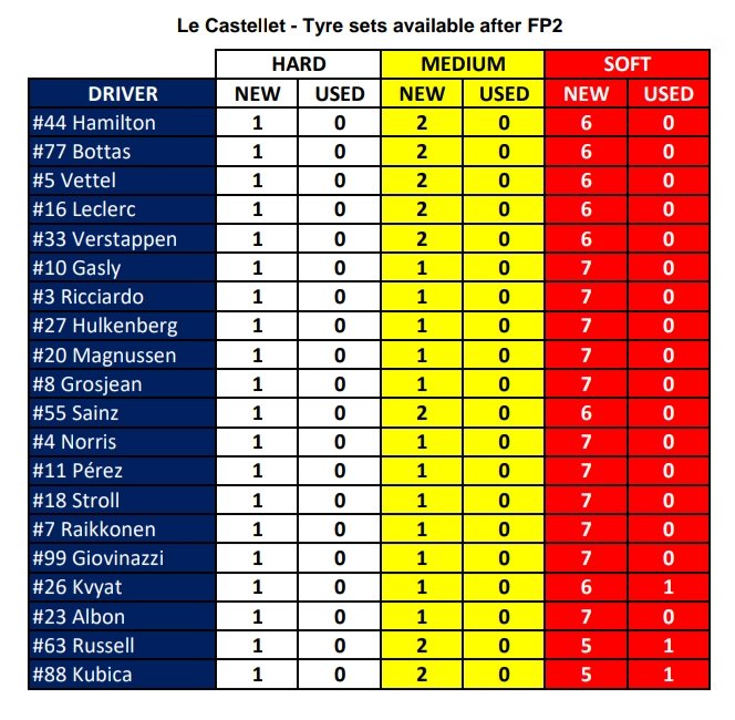 Verder lijkt het erop dat slijtage extreem gaat worden. Het is erg warm en de softs gaan eraan. Ferrari lijkt helemaal zware problemen te hebben gehad. Lossen ze het niet op, dan gaan ze waarschijnlijk al moeite krijgen met kwalificatie runs. Verwacht ook geen tien ronden voor de eerste pitstops en potentieel twee stoppers als we geluk hebben. Vervolgens kijk wie van de top coureurs een extra setje mediums heeft.