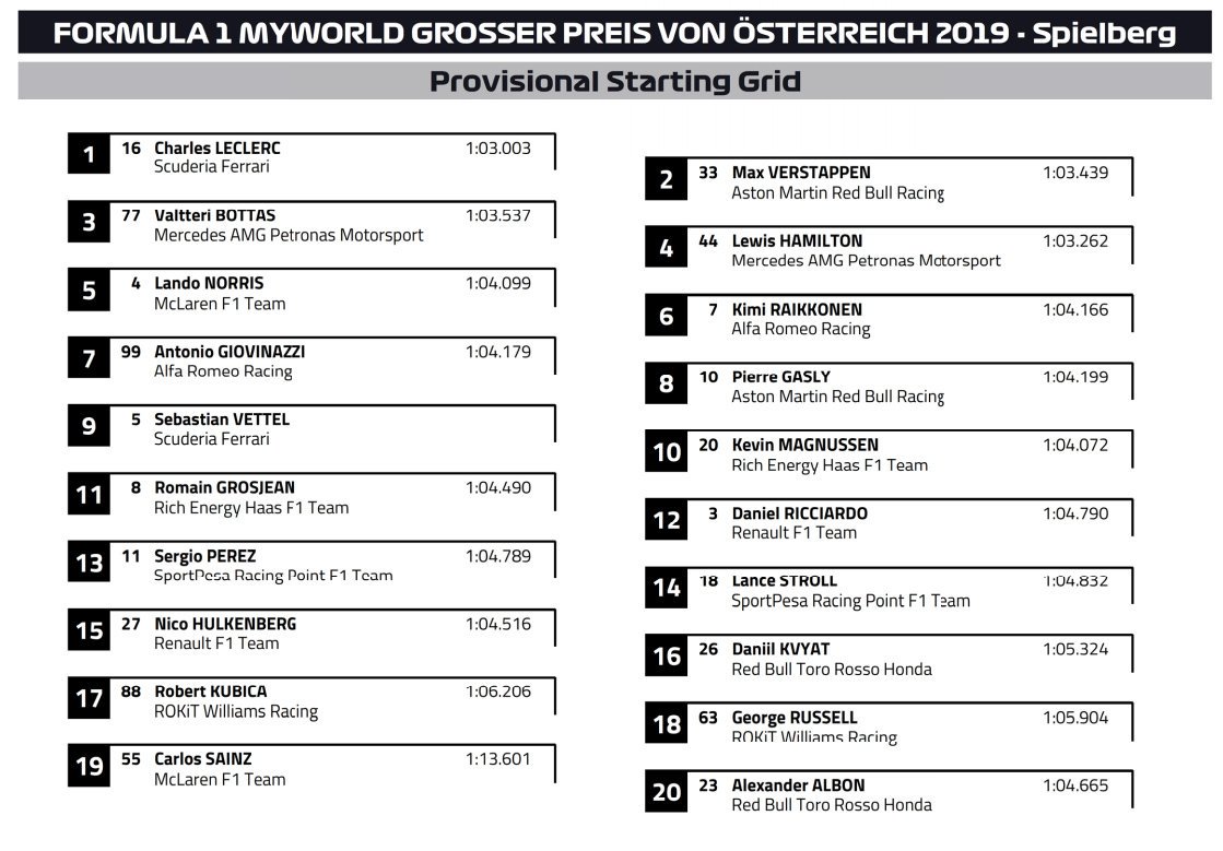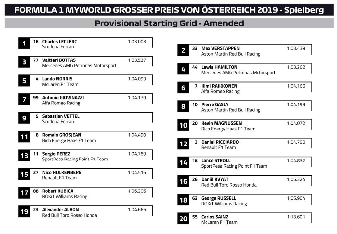 Het is dus even uitkijken naar de officiële starting grid van de FIA.