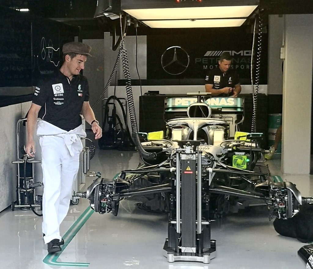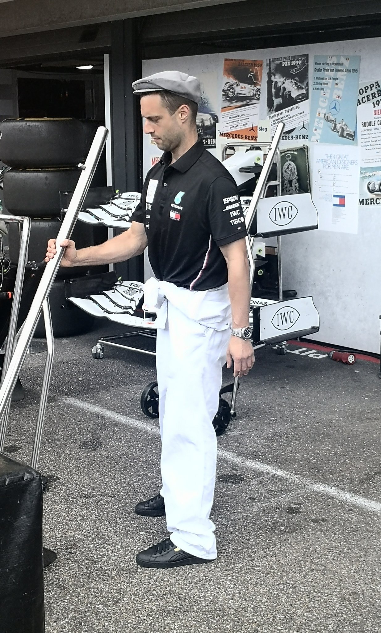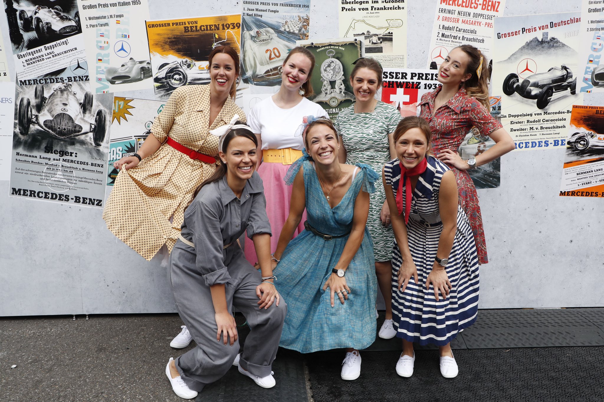Lees net dat het ter ere is van Mercedes hun 200ste GP. Kleding is gebaseerd op hun eerste race. De GP van Frankrijk 1954