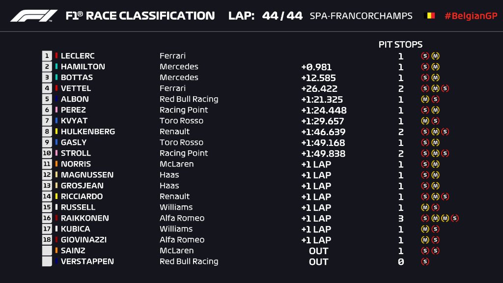 Nouja, dankzij die undercut kon hij wel Hamilton ophouden en heeft LEC nu de win waarschijnlijk. De banden van VET leken sowieso sneller te slijten dan die van de rest, op zn eerste set hield hij het minder lang uit en op zn tweede ook. Denk dat het uiteindelijk niet zoveel uit had gemaakt, maar het had wel wellicht LEC z'n win kunnen kosten. Lijkt me in dit geval dus een prima beslissing van Ferrari (voor de verandering).mnarijnm schreef op zondag 1 september 2019 @ 17:06: