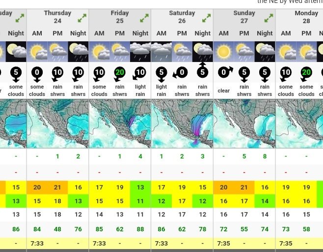 Forecast predicts medium chance of rain, mainly evening and night time. Higher temps on Sunday (22-24C) Windy on Friday. pic.twitter.com/T5EaniyUtt
