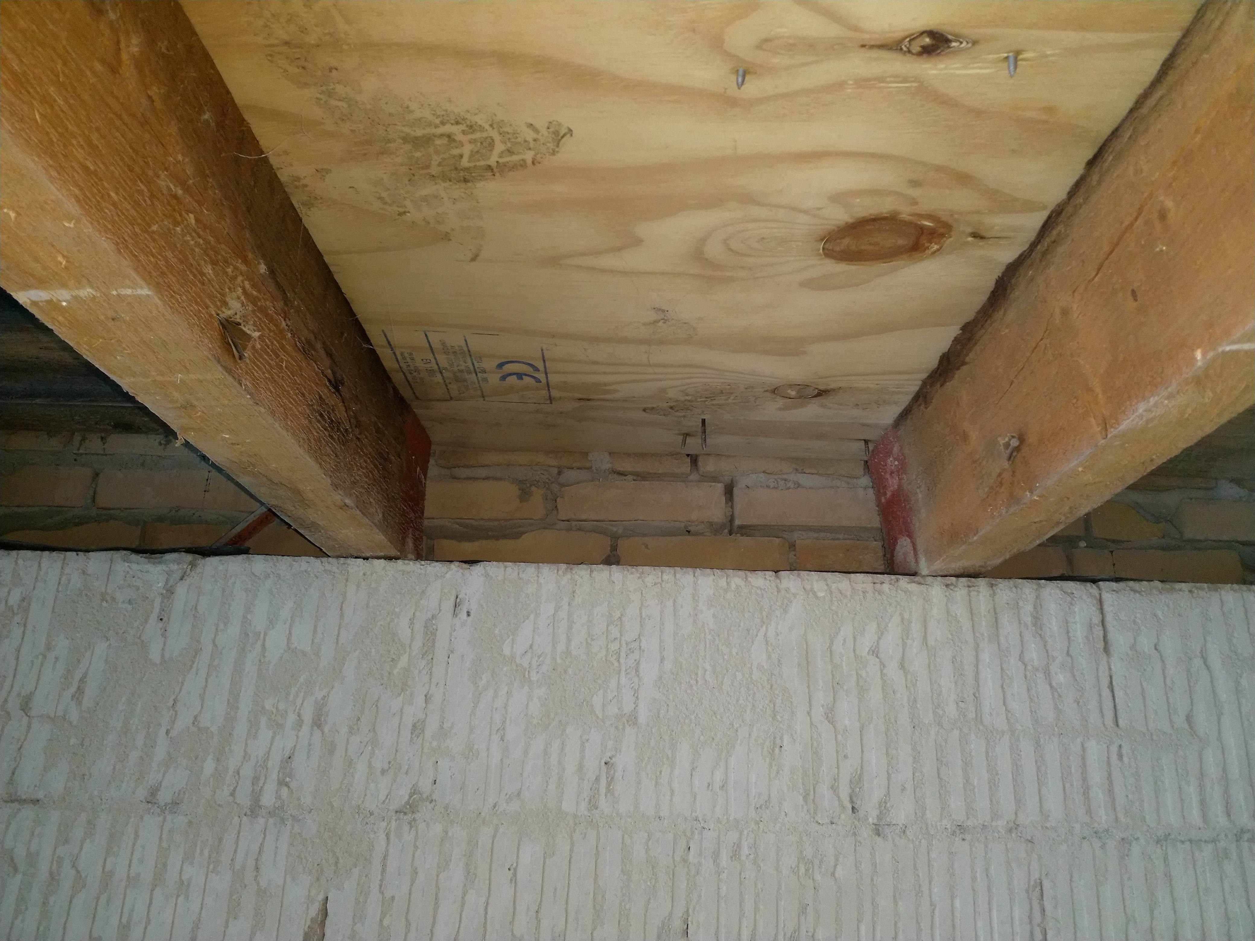 Achter de houten balken is nog 3 cm ruimte tot de buitenmuur.