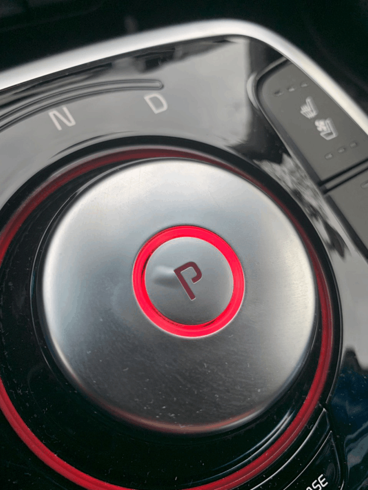 @DSmarty hier nog geen roest op die plek. Ik gebruik de P knop heel zelden (als je de auto uit zet gaat ie vanzelf al op P). Wellicht met poetsen een agressief middel gebruikt of een keer iets aan je vingers gehad met een oplosmiddel?