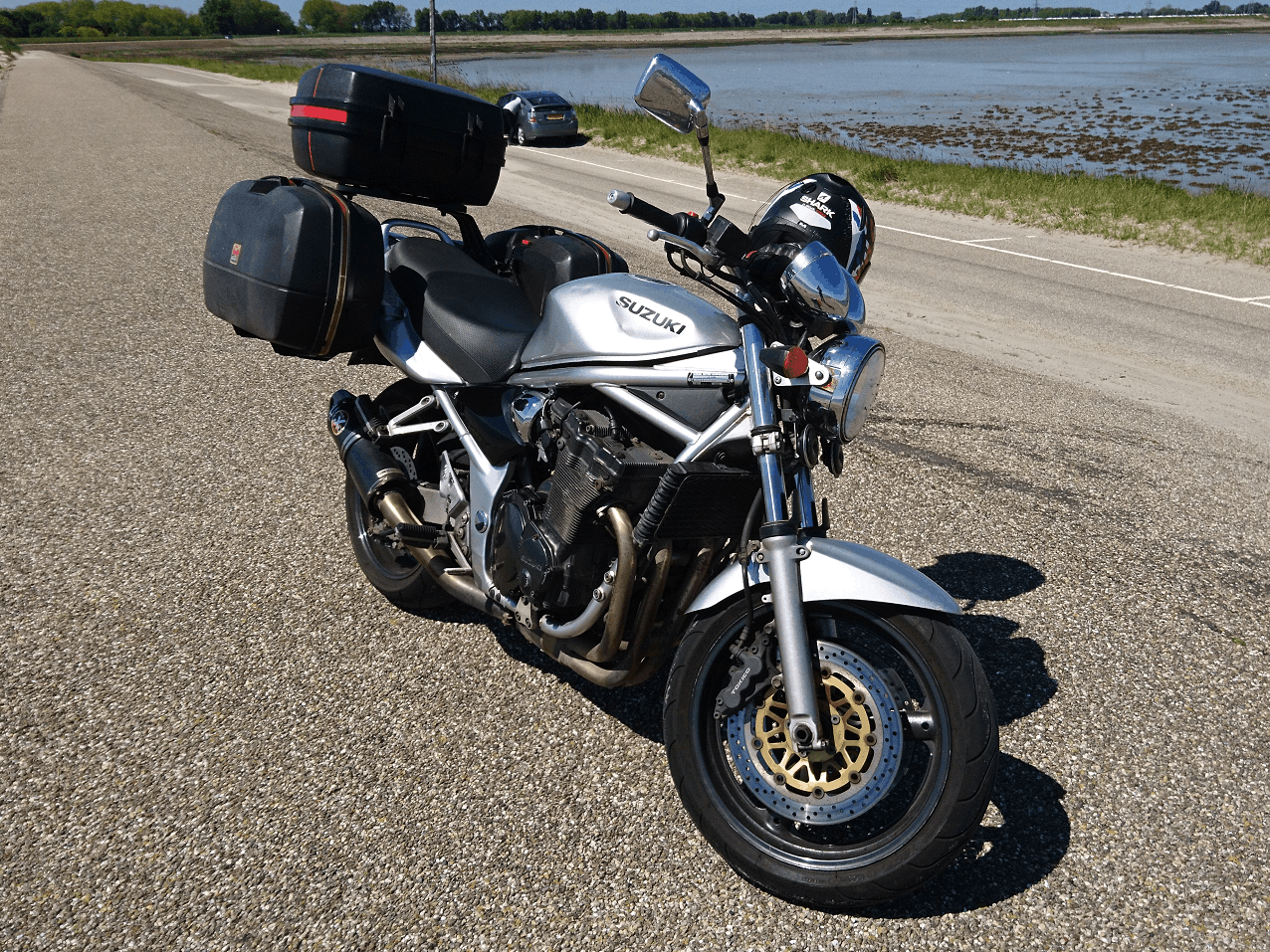 Afgezien van het sportuitlaatje, is deze bandit nog erg standaard. Er zal dus nog wel het een en ander veranderd gaan worden. Remmen met standaard blokjes als je gesinterd gewent bent, is even opletten