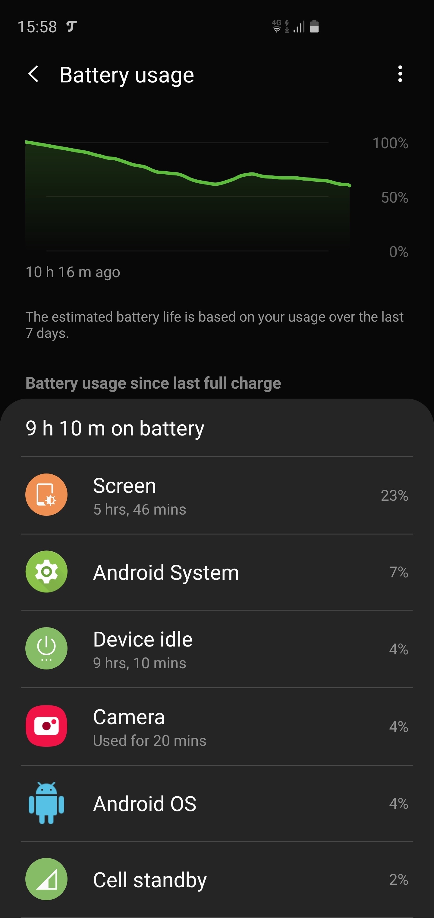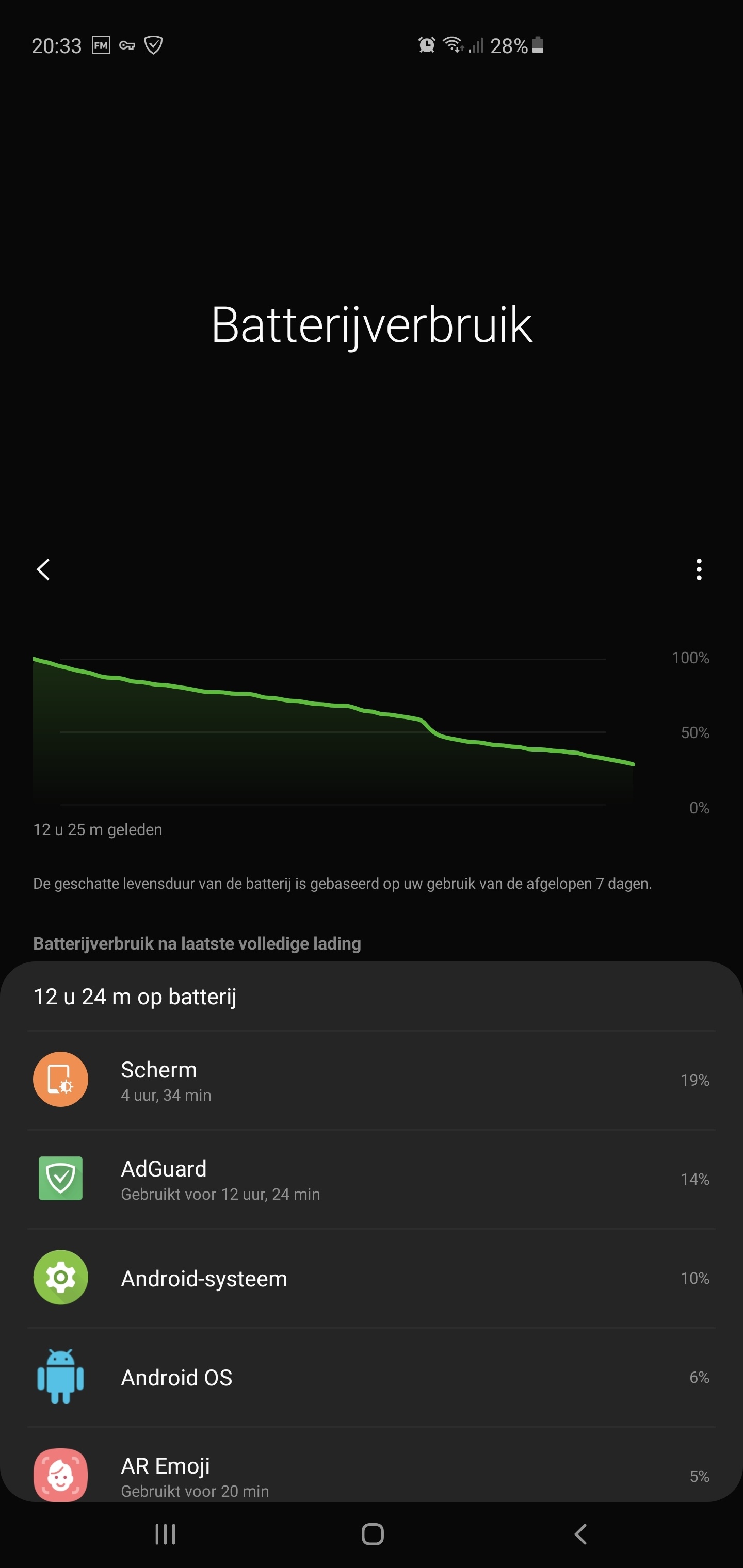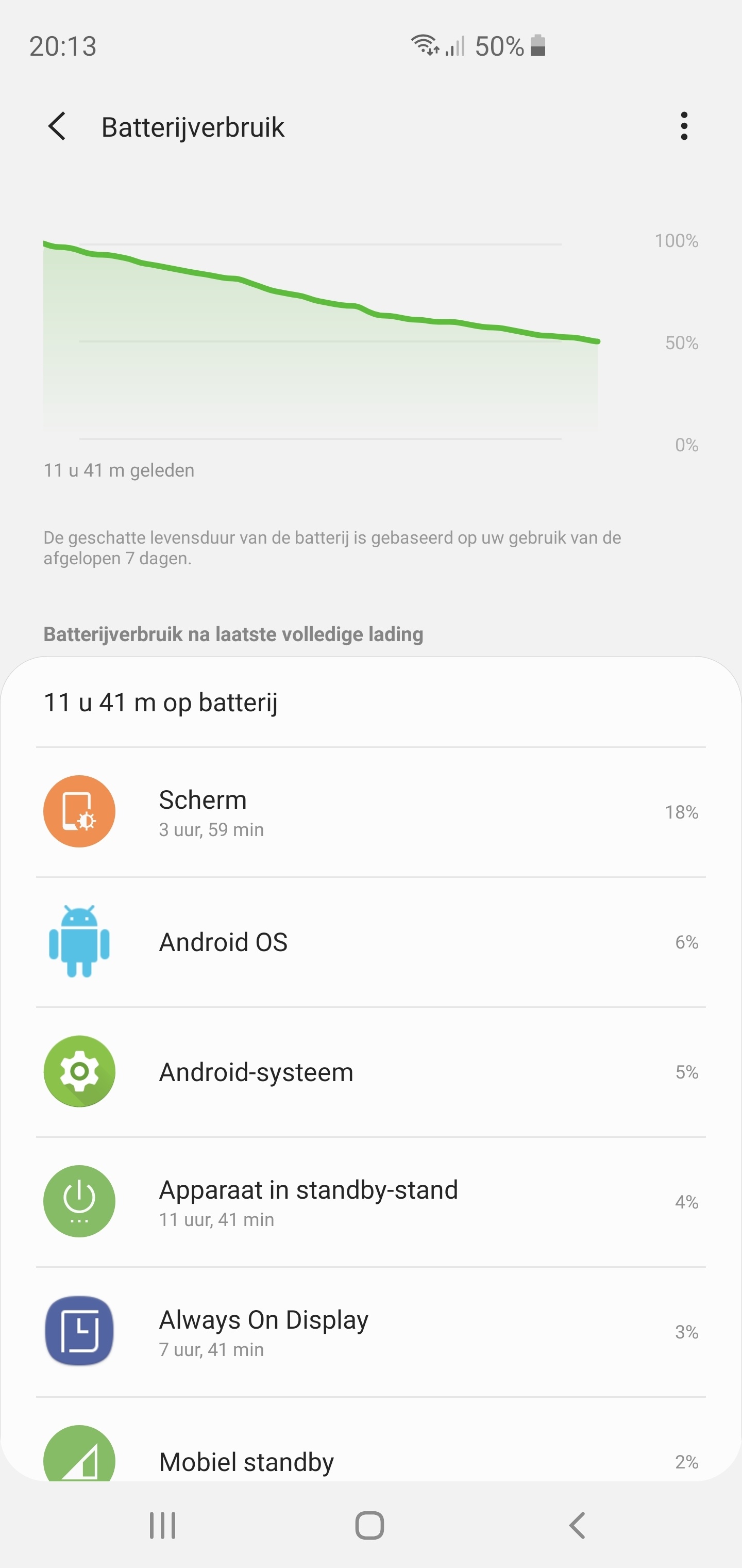 Voor mensen die erin geïnteresseerd zijn, mijn batterij verbruik op de S10+ vandaag. Zojuist onderstaande screenshot met 50% resterend gemaakt.
