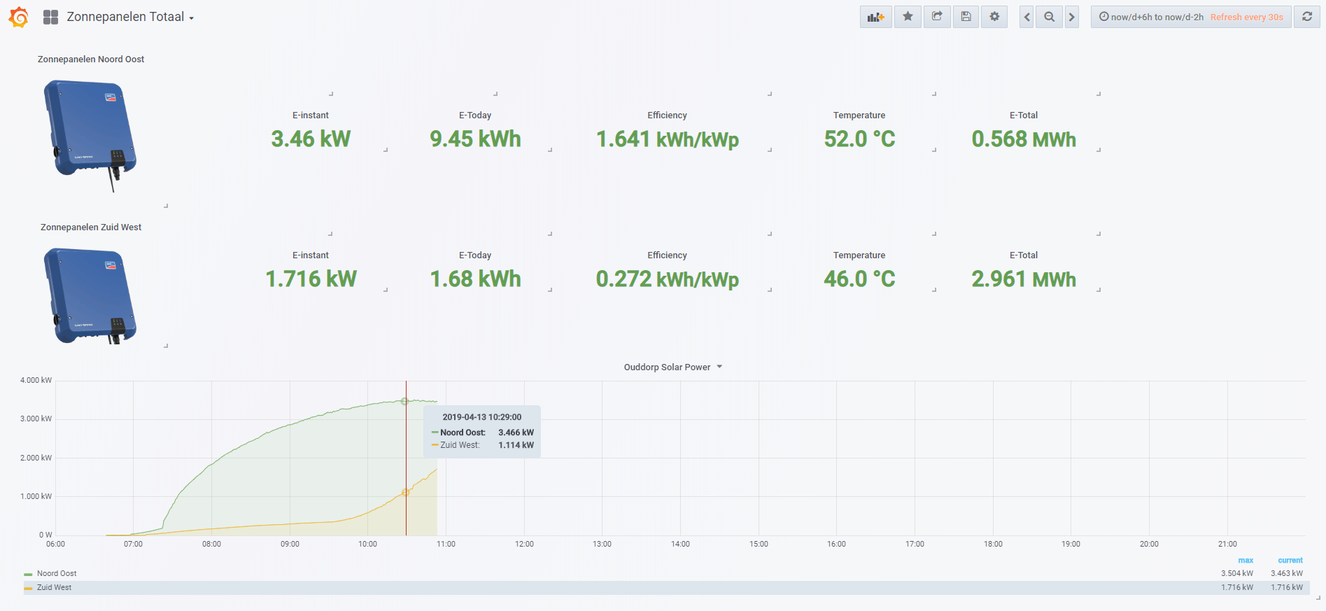 Noord-Oost-Zuid-West 11640Wp Totaal Live, Netduino advanced pv logging