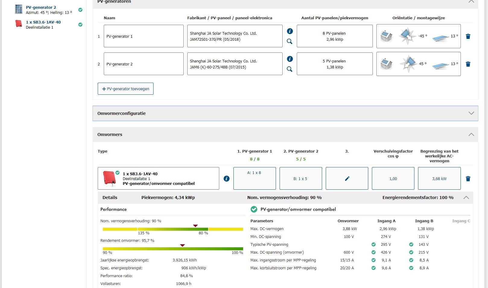 ik zit de denk aan 12x 340wp ja solar panelen in strings van 6 st.