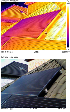 Een exacte temperatuursmeting is (bijna) niet te doen met een IR kamera. Je meet straling en die krijg je ook van andere bronnen die weer reflecteren in de panelen. Met zon (en bewolking) hebt je dus nogal last van “ruis”.HyperBart schreef op vrijdag 25 oktober 2019 @ 19:16: