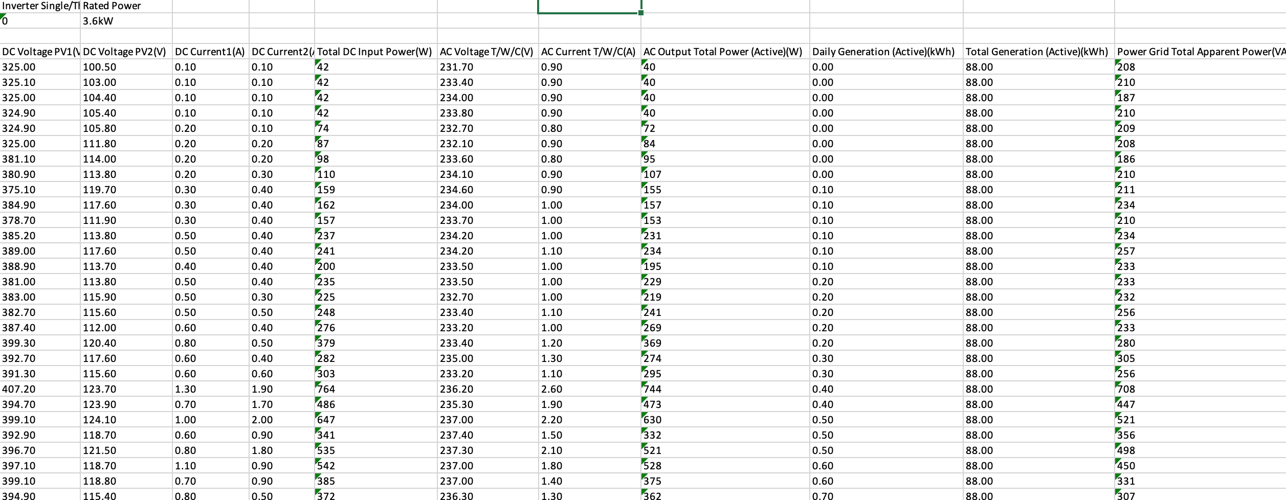 Mijn inverter heeft een export mogelijkheid naar excel welke ik nu aan het bekijken ben, ik vraag mij af hoe het rendement te berekenen: