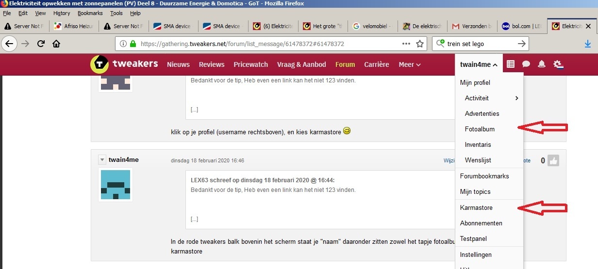 In de rode tweakers balk bovenin het scherm staat je "naam" daaronder zitten zowel het tapje fotoalbum als de karmastore.LEX63 schreef op dinsdag 18 februari 2020 @ 16:44: