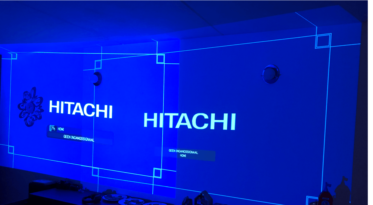 Hier zie je bij het bauwe HITACHI scherm het verschil in kleur/licht opbrengst. Links is de CP-WX4021N en rechts is de CP-WUX645N.