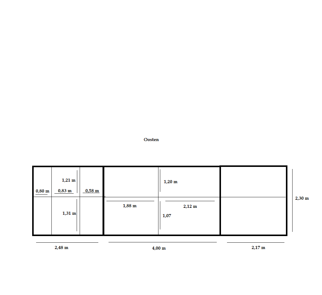 Dikke lijnen zijn muren, dunne lijnen zijn dragende balken.