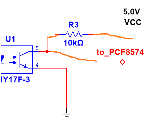 Op de PCF8574 komt maar 0.5V volt te staan, de rest komt over de optocoupler zelf te staan.