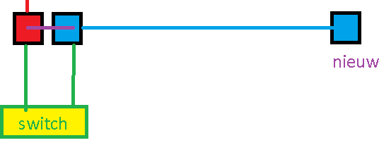 Ik heb op de begane grond een centraal punt staan (hub) waar alle cat5e kabels van de muurdozen binnen komen. Vanwege verbouwing wil ik nu een WCD toevoegen. Op het plaatje zie je de rode lijn.... daar loopt nu 1 cat 5 kabel doorheen in een PVC buis. Ik wil deze kabel er uit halen en aan het uiteinde 2 nieuwe cat5e kabels vastknopen en die er vervolgens doorheen trekken (waarvan een langere voor de nieuwe voorzetwand aan de overzijde). De langere gaat vervolgens onder de vinyl vloer door (hier maak ik een gleuf in de ondervloer, welke bestaat uit : geluidsdempende ondervloerplaten, rubber matten, groene vloerplaten en daarboven underlayment met vinyl). Deze kabel loopt dus naar de voorzetwand en daar wil ik dan uiteindelijk een nieuwe netwerk wand doos plaatsen.